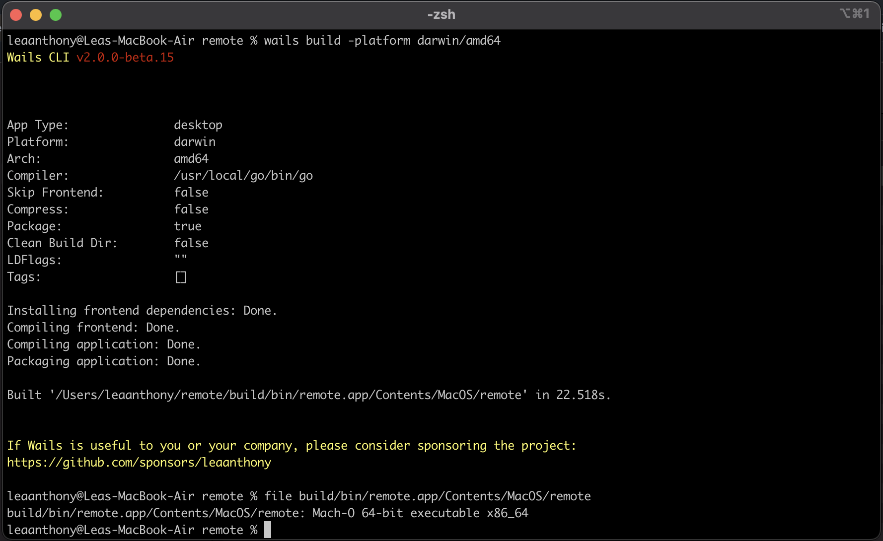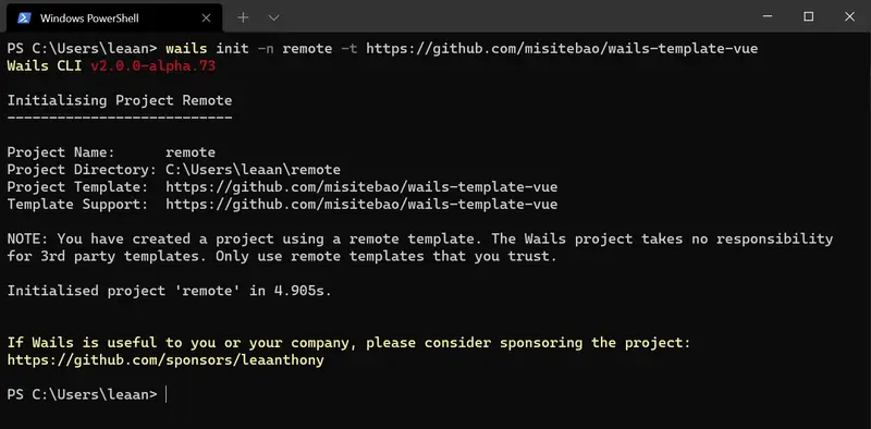 PS: If you or your company find Wails useful, please consider sponsoring the project. Thanks!